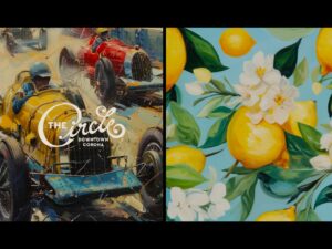A custom “C” logo references the historic raceway, paired with lemon-yellow and citrus green tones that reflect the region’s agricultural roots. Typography plays a key role, with a vintage, hand-lettered style inspired by early 20th-century race and produce advertisements. The letterform extends into a lemon branch, embedding symbolism directly into the design.